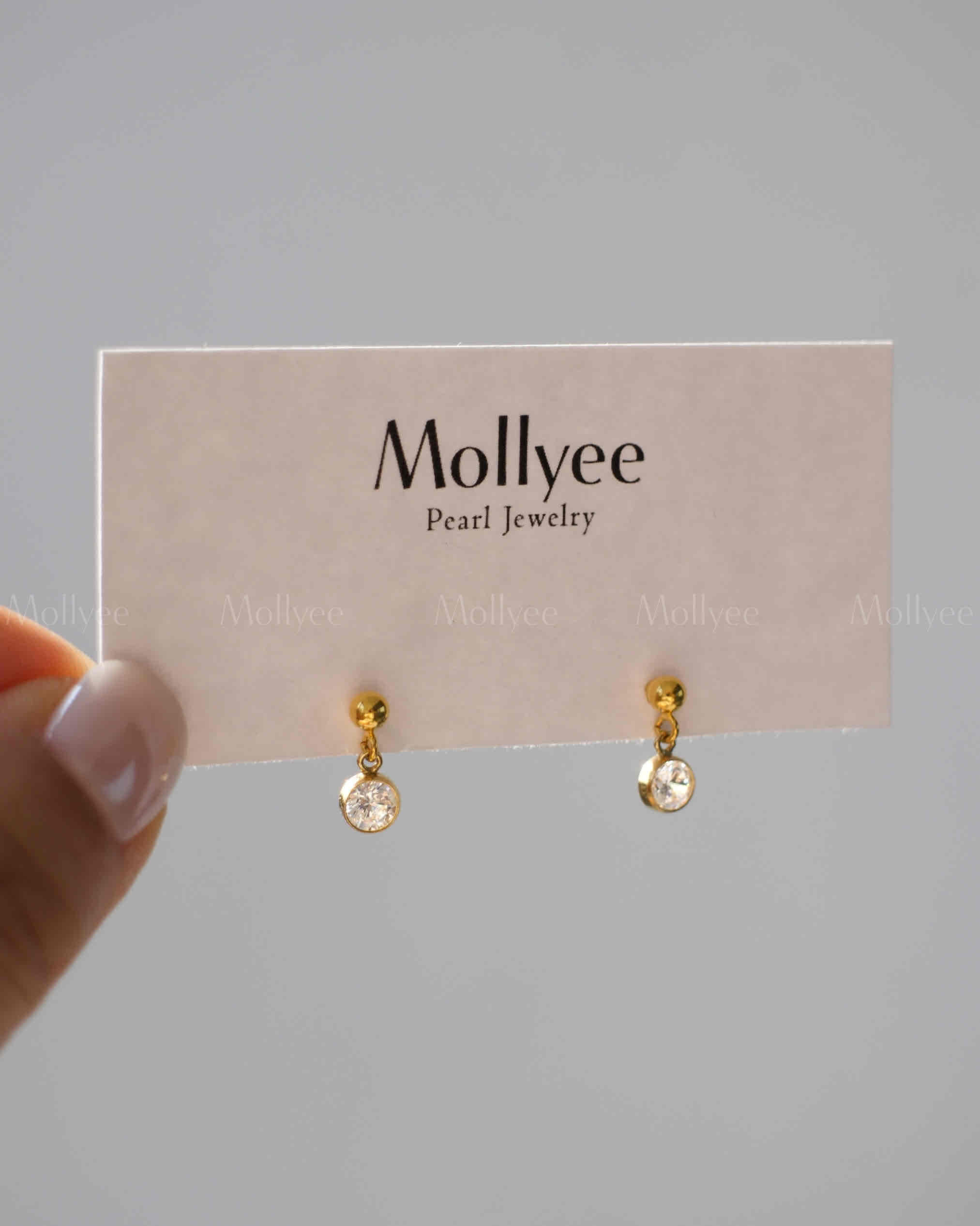 These tiny, glittering cubic zirconia studs are super dainty and lively. Ideal for stacking, they add an easy, modern touch, bringing a dash of contemporary charm.