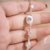 The Silver Glow Baroque Bracelet features handcrafted silver-blue baroque pearls with a dazzling luster, accented by white 5A cubic zirconia set in 925 silver. Its layered design shines brilliantly, especially under night lights, making it perfect for both daily wear and formal occasions.