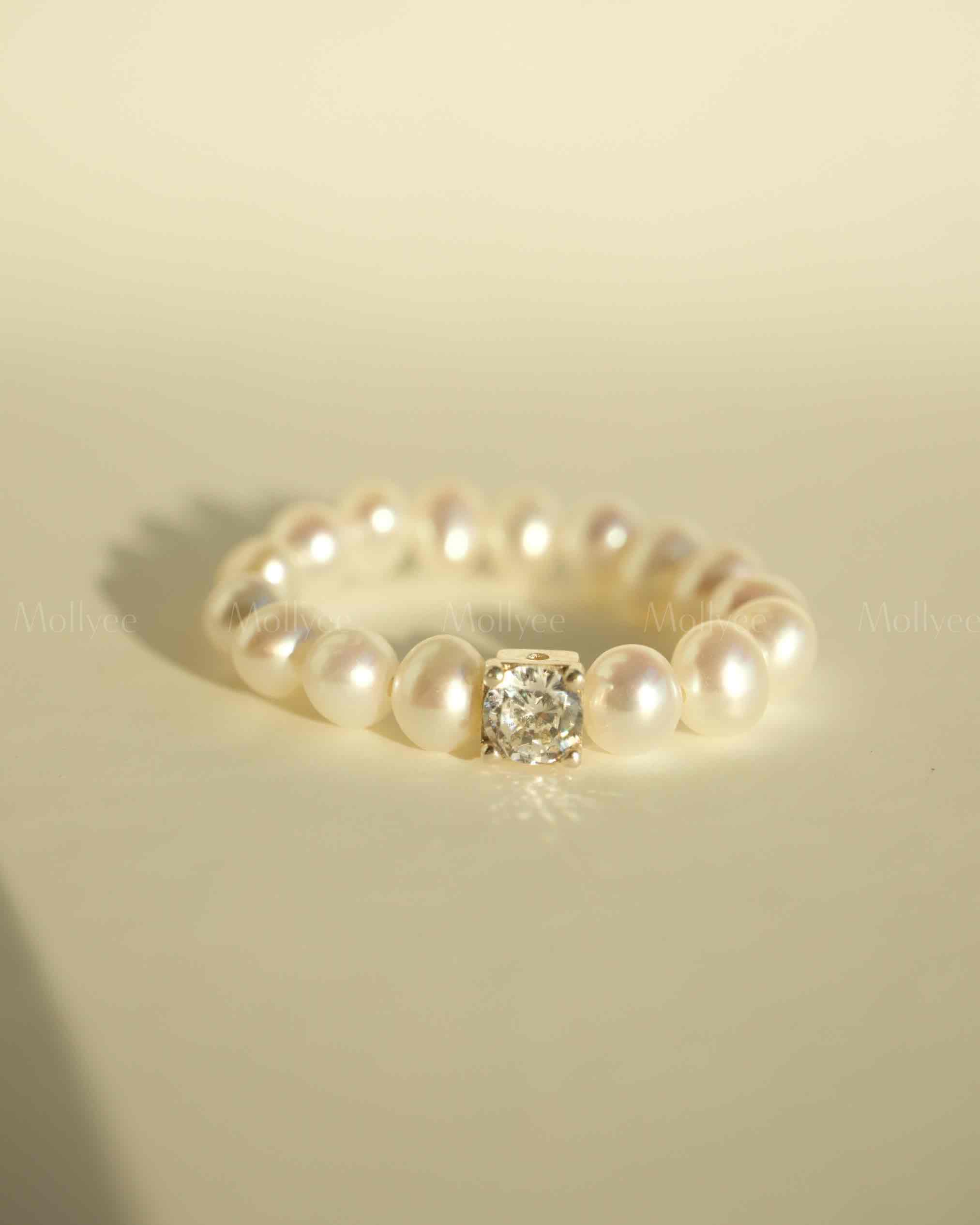 This ring with white zircon and pearl on an elastic cord is a daily dazzler. Comfortable for solo or stacked wear, it adds classic, easy – to – wear charm to your everyday style.