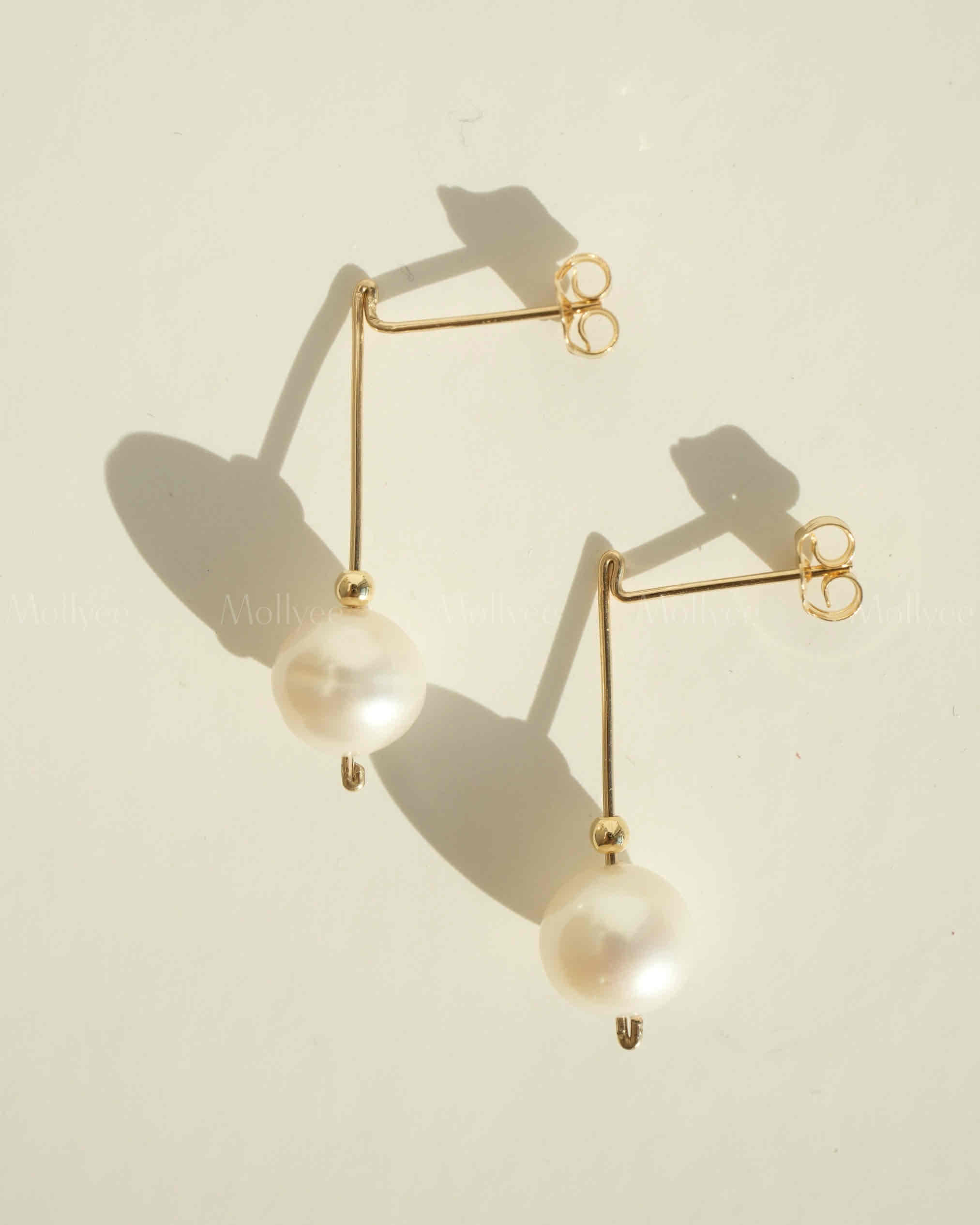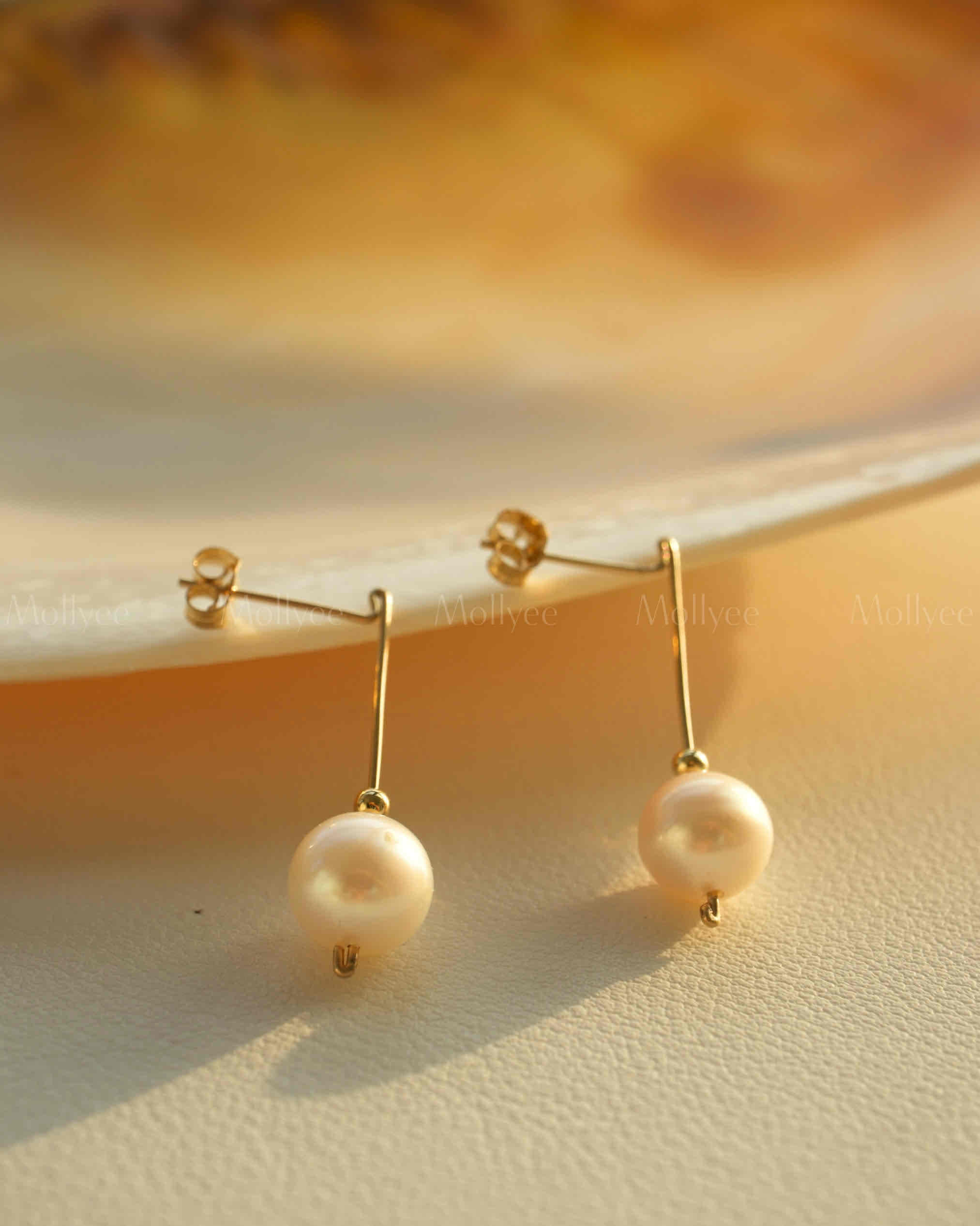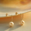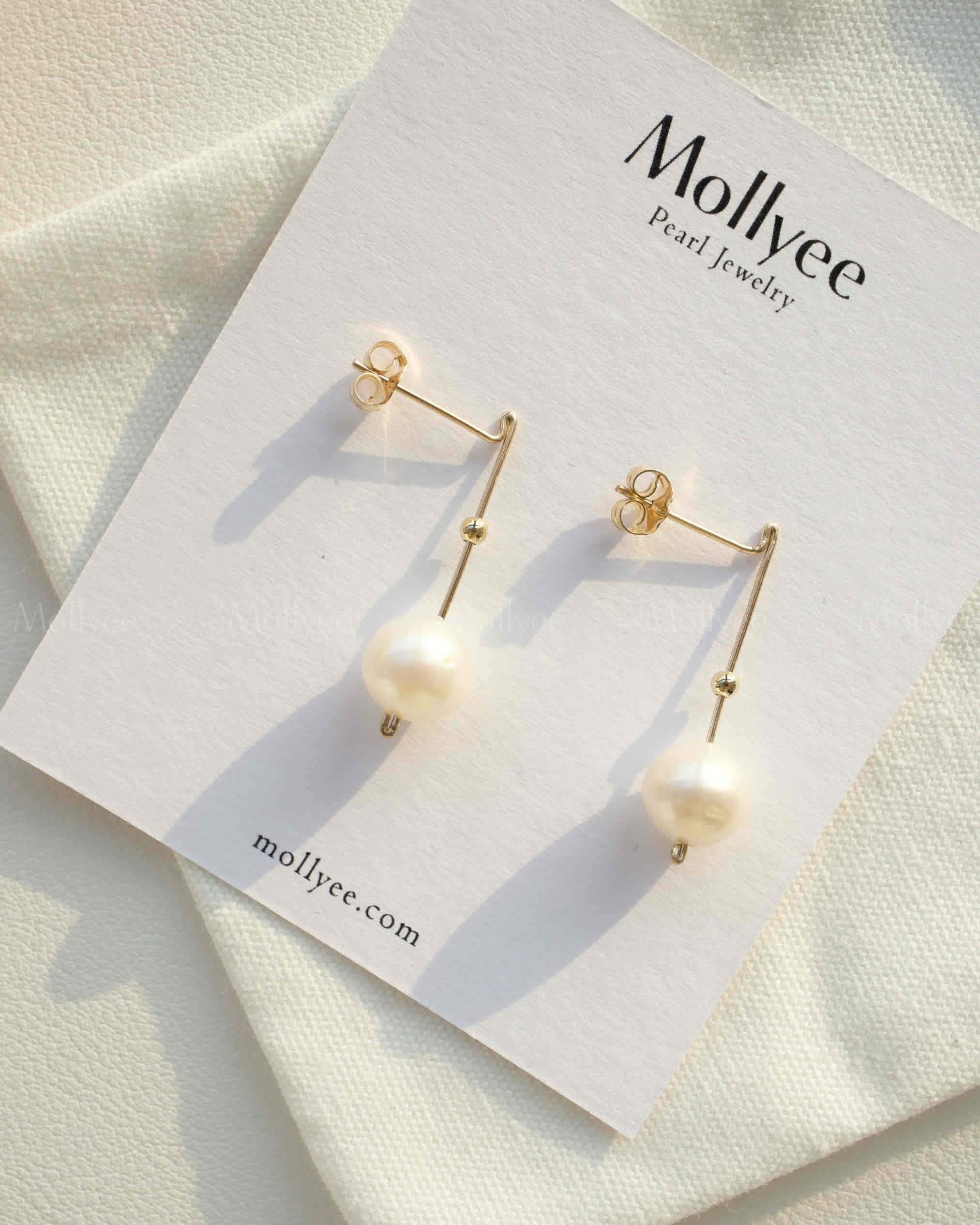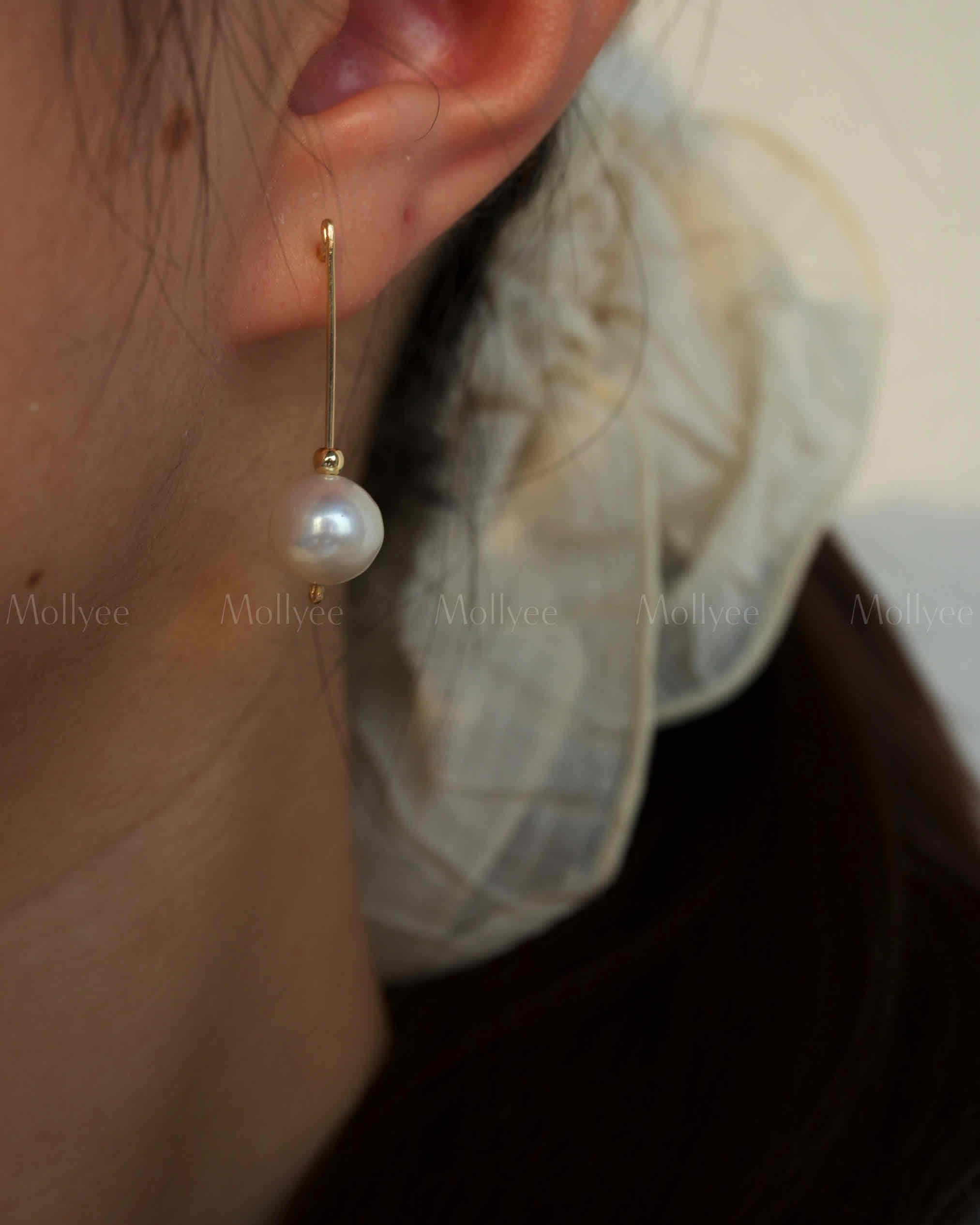 This earring combines a round pearl and small gold beads with a 14k gold – filled wire. It’s straightforward, classic, and unique, for those loving simple yet special style.